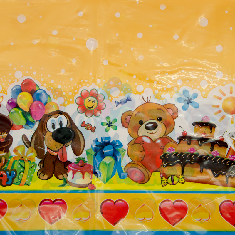 Яркая полиэтиленовая скатерть «Сладкоежка» поможет сделать детское торжество ярче и веселее: она отлично украсит праздничный стол и сохранит его в чистоте.