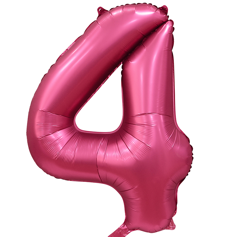 Шар (34''/86 см) Цифра, 4, Бордовый, Сатин, в упаковке 1 шт.
