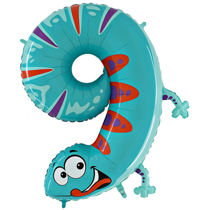 Шар (40"/102см) Цифра, 9, Ящерица, 1шт. В упаковке